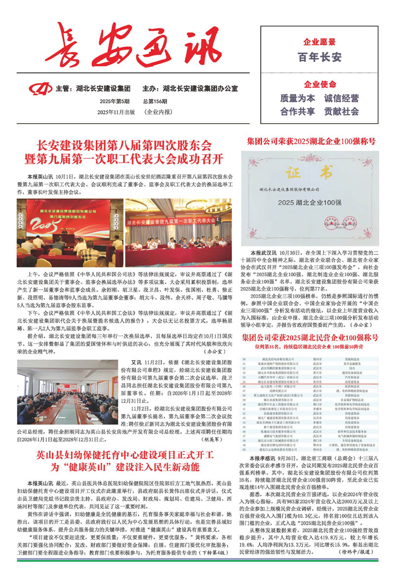 • 2025-11-03 集團公司榮獲2025湖北企業100強稱號,位列第77名